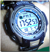 カシオウォッチ大好きな私ではありますけど、これはちょいと文句言いたくなりましたね。釣り人なら誰もが一番気にするであろう、潮時がわからないなんて・・・。そりゃ月齢表示でおよそのことはわかりますし、満潮・干潮時刻だって、釣具屋でもらった潮時表みりゃわかりますけどね・・・・。それじゃ意味ないんですよ、トホホ。