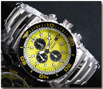 そして、私はやっぱり「イエロー」を選んでしまいます(笑) でも、水中で一番目立つ色なんで実用性の意味からいってもイエローは正解ですよ! ちなみに、いくら200m防水といっても、水中でクロノグラフのボタン押したりしたら浸水しちゃいますから、ご注意!!