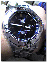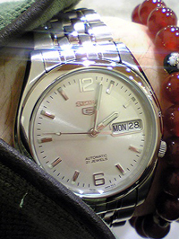セイコー5 もちろん自動巻き。セイコー5シリーズは殆どが海外生産の海外向けモデルですけど、最近は逆輸入という形で日本にも入ってきて、レトロチックな感じとリーズナブルな価格でファンを増やしているみたいです。