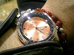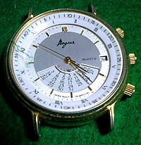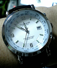 時計そのものは日本製ムーブ使用のなんてことない安物ですけど、万年カレンダー(手動ですよ!)がちょっと面白くて、やけに値切り倒して買った覚えがあります。