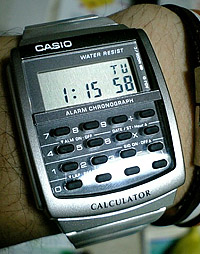 まあ、それほど使いはしません(笑) 第一、キーが小さすぎて正確に押すのに一苦労です。もちろん、電卓以外にもアラームやストップウォッチは付いていますから、こちらは重宝しますよ。