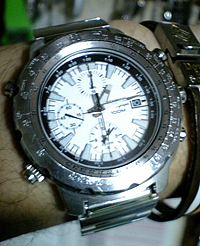 クロノグラフ+アラームという、面白い時計だったんですが、現在はさらに病状が進んで、クロノのリセットボタンが動作せず。アラーム機能もなんだかヘンテコな感じで、殆ど機能してません。