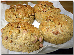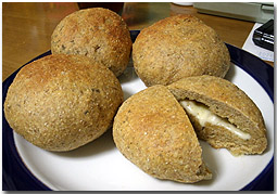 うちの年代もの電気オーブン(ナショナル製)は小さいので、一度にこのくらいしか焼けないのが不満になってきました。しかも毎回手ごねするのもシンドイし(^^;)、お手軽に全粒粉食パンが作れるホームベーカリーが欲しいかも。