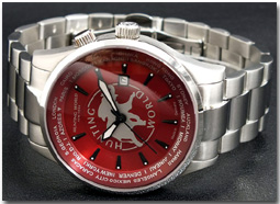ドイツメイドの自動巻きウォッチは10気圧防水・日付カレンダーというシンプルな構成ですが、実はインナーベゼルを装備していて、世界24都市の時刻が一発でわかるという、気の利いた機能がついてます◎