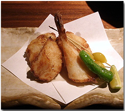 博多ではスーパーにも普通に売ってますし、このフグを食べることは珍しくもなんともありませんけど、北海道ではフグを食べることは滅多にないらしいということで、同行の札幌人のために注文してみました。
